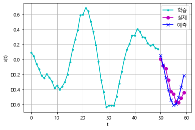 plt.legend(['학습','실제', '예측'])